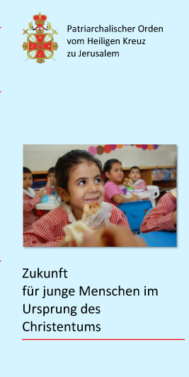 Der Patriarchalische Orden vom Heiligen Kreuz zu Jerusalem, Statthalterei Bundesrepublik Deutschland, mit seinem Großmeister Patriarch Youssef I. unterstützt mit den Spendengeldern langfristig angelegte Projekte für die melkitische Kirche und die im Nahen Osten lebenden Menschen aller Religionen und Konfessionen. Diese Projekte stellen wir Ihnen auf diesen Seiten vor und bitten um Ihre großzügige Unterstützung.